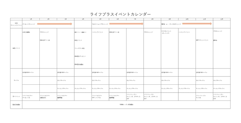ちなみに、ライフプラスの現在の年間のイベントカレンダーはこんな感じです。