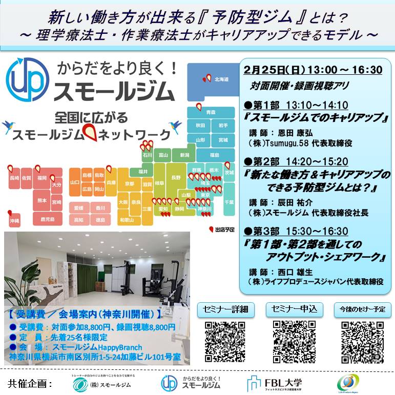 来たる2月25日、恩田代表トレーナーが経営する横浜の「スモールジムHappy Branch」にて勉強会を開催します。恩田代表や私辰田が今後のキャリアアップ等のテーマを中心にお届けします。
