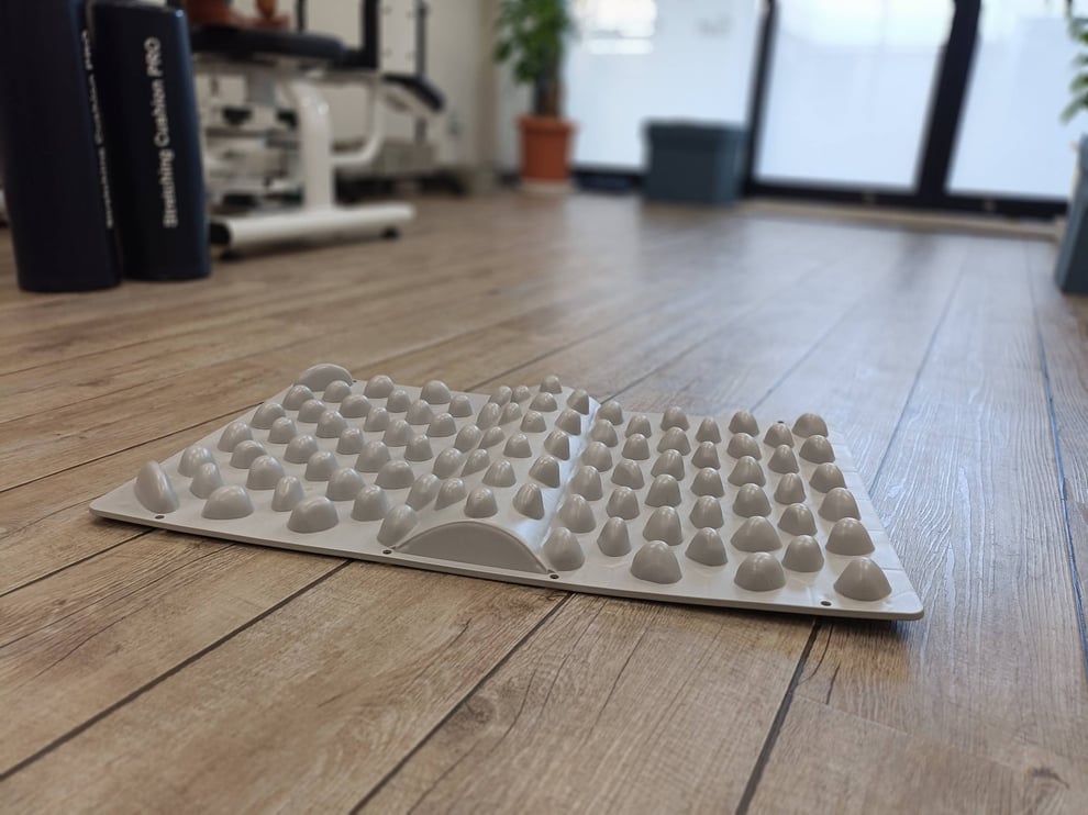 先週にはTさんからの差し入れとして、「いぼいぼマット」を頂きました。ご自身が自宅での足底のケアの為に購入したのですが、使わなくなり置物と化してしまったという良くある話です。早速レッスンで使わせて頂きましたが「痛い!」「乗れない!」「私は大丈夫!」といった具合に皆さんそれぞれのリアクションで楽しみながら足底をほぐして頂いています。既に行き場を無くしたフィットネスアイテムが見事に生き返った瞬間でした。ちなみに私も使いましたがかなり激痛でした(^^;