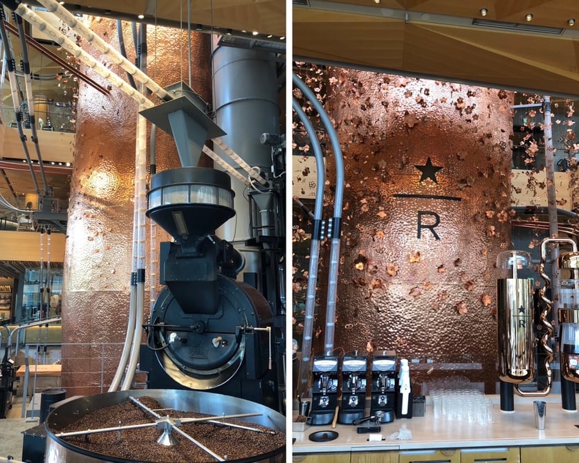 こちらのスタバは世界に6店舗しかないブランドで、さまざまな抽出方法でコーヒーを楽しむことが出来たり、目の前でコーヒー豆を焙煎しているところを見ることが出来たり、壁には目を引くアートがたくさんあったり、まさに洗練された特別な空間に来た感覚になりました。